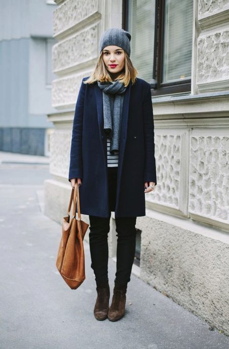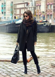 Scarves are becoming increasingly popular, and without them, now rarely does a classic image cost. For a strict coat it is permissible to choose scarves of bright colors, for example, purple or blue.