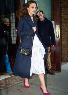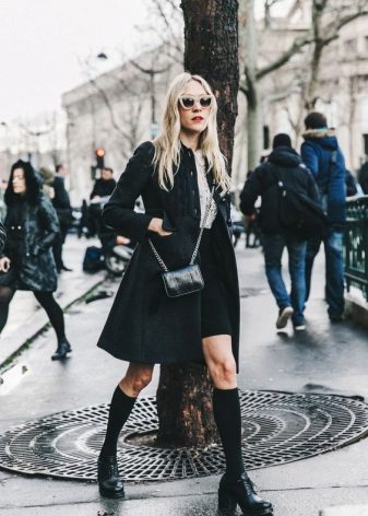 If the image is based on a shortened model of a classic coat, which has signs of youth fashion, then as an acceptable option you can consider more fresh ideas and vivid images. This may be a long skirt or dress, shorts that look like cropped trousers, skinny dark jeans. Classic allows you to look bright young ladies.