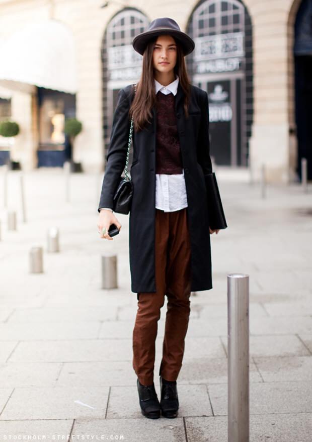 Classic can be bright and expressive, if you choose a coat of blue, brown or rich, slightly muted burgundy shades. You will not go beyond the boundaries of the classic image, but you will single out against the background of plain streets and amaze others with your exquisite originality.