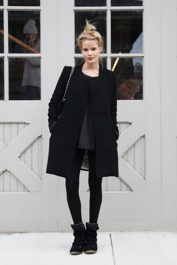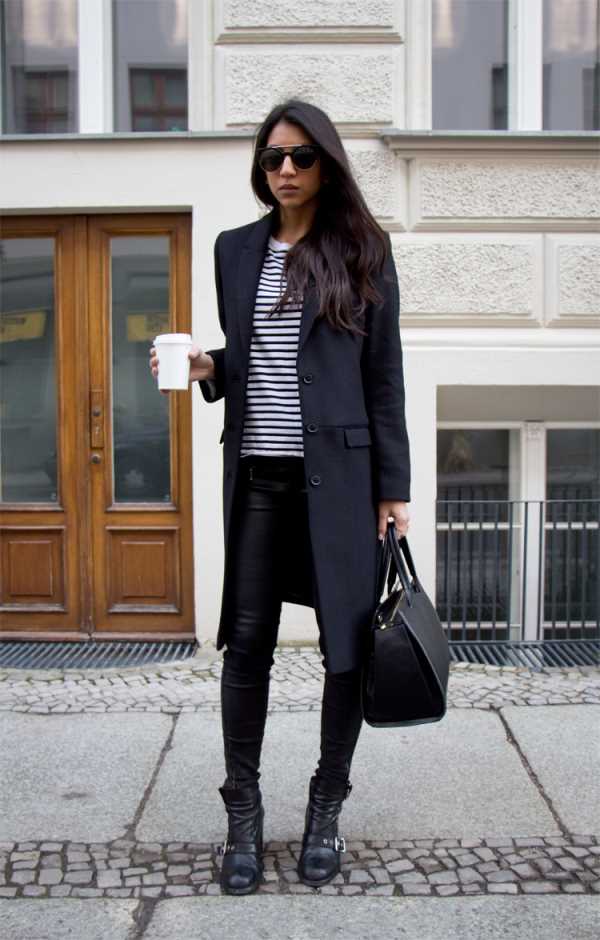 The last secret, which will help to transform even the simplest black classic coat, is hidden in a leather belt. No matter how simple this add-on may seem, it can work wonders. By the black leather belt, you can pick up a leather clutch, which will only enhance the effect.