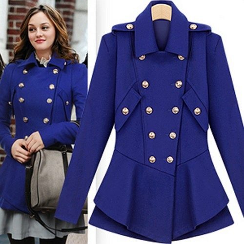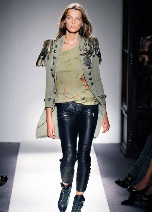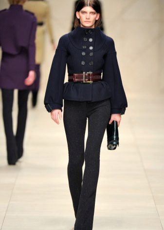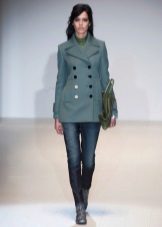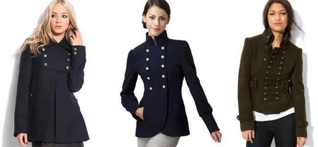 Designers, as they can, adapt the brutal style of the military uniform to the women's taste and style. Such models have an exact cut "on the figure" and ideally emphasize the feminine silhouette of the hourglass. A double-breasted military-style mini coat with stand-up collar and metal buttons looks very stylish.