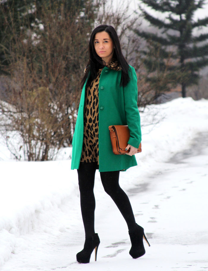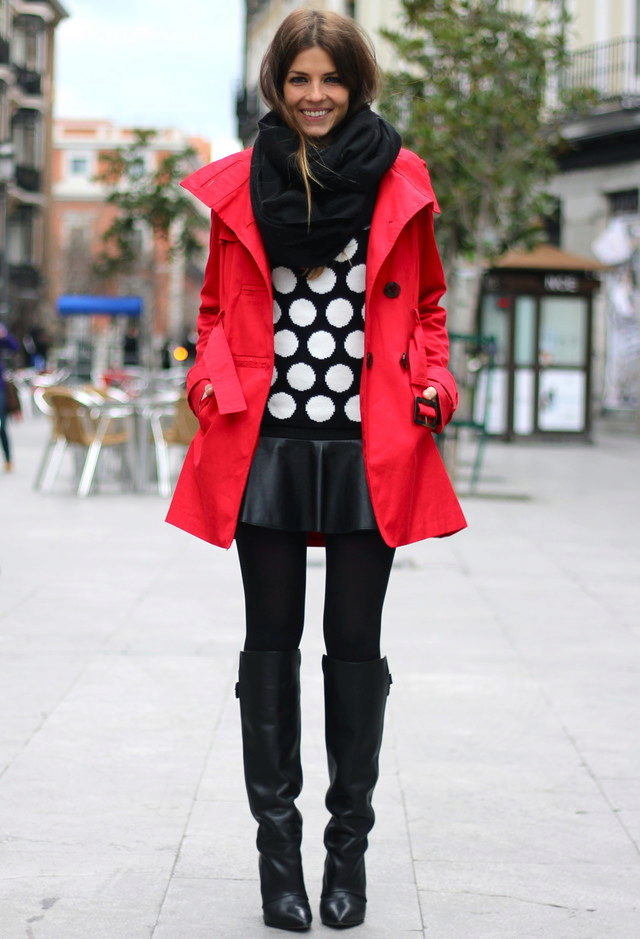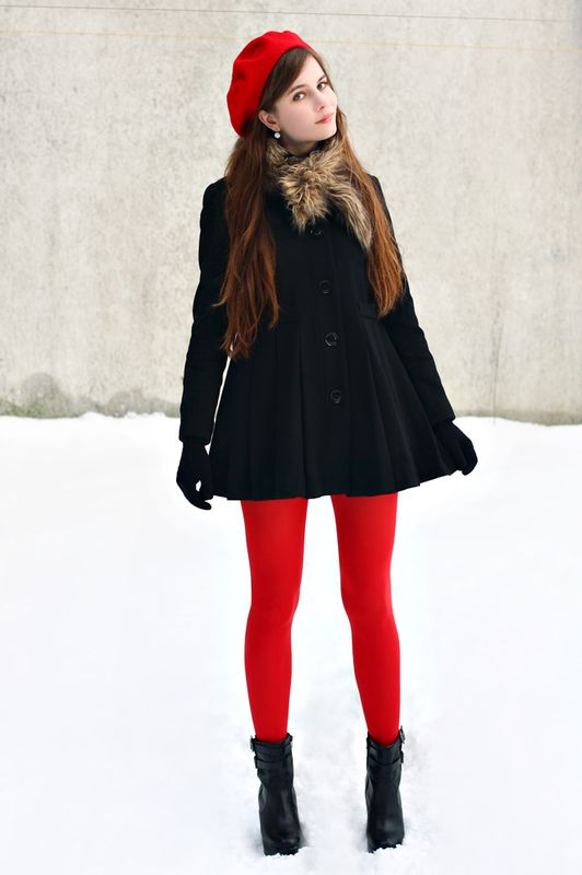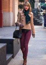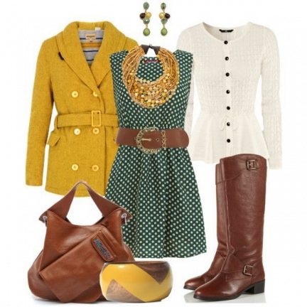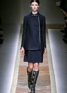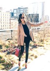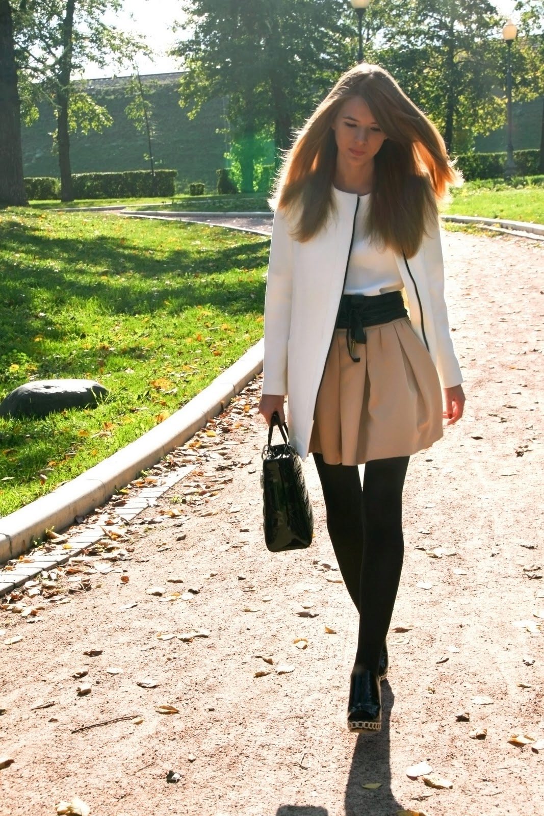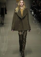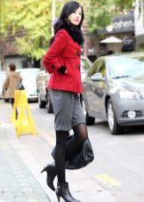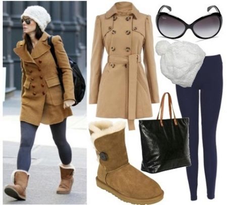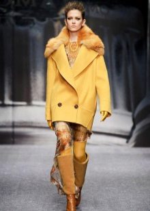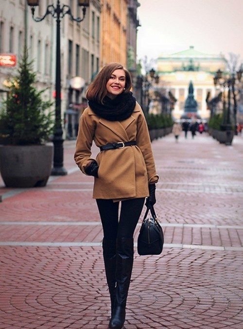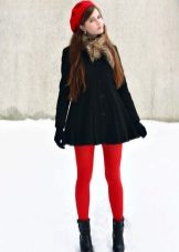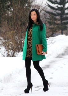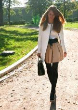Original will look tights in one color with a short coat. But if the mini-coat and pantyhose are bright, the rest of the clothes should be selected in neutral shades. Most models of short coats are sewn without a belt. But if you wish, you can highlight the waist with a wide leather strap of natural color. As for shoes, it is important to note that the shorter the coat, the higher the boots can be.