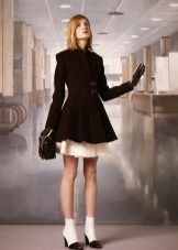 Mini-coat was originally intended for riding in open cars. Such coats were then made of almost no creasing fabrics, so that the driver could have a pretty decent look after the trip. To date, there is a huge selection of various models of short coats, differing in style, length, color and decorative trim. Below we consider this item of clothing in more detail.