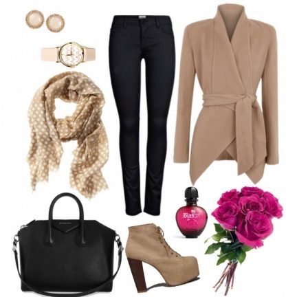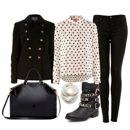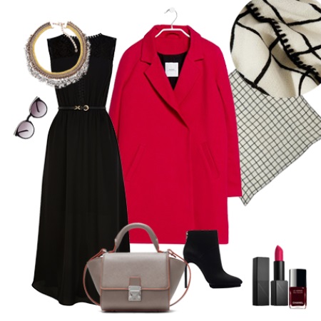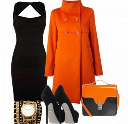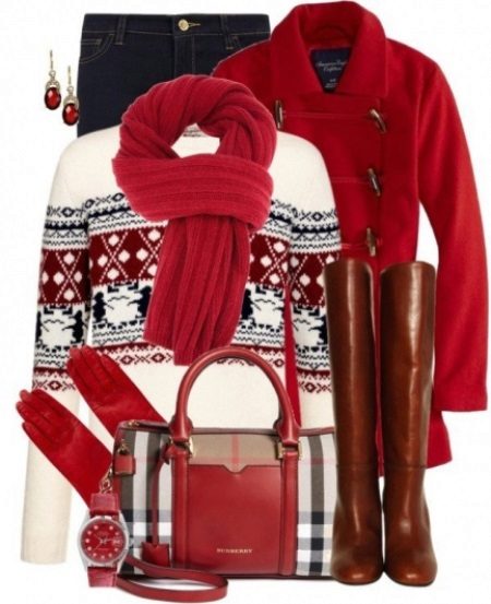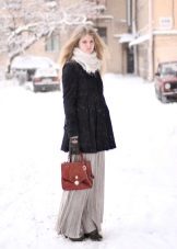 A long scarf or snood, beautifully laid around the neck, will perfectly complement the chosen ensemble. Special attention should be paid to gloves. They are best combined in color with a hat. Three-quarter actual cropped sleeves can be emphasized with long black gloves or coats contrasting with a coat.