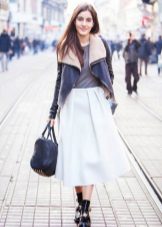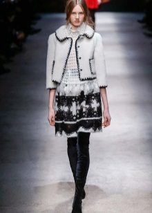 A wide selection of models of short coats allows you to create many successful combinations with a variety of wardrobe items. The women's short coat goes well with the classic skinny trousers of any length and looks quite impressive with leggings or leggings, leather can be. Fashionable short coat can be worn with your favorite jeans of any style and sweater, it is better if it will not look out from under the coat. Superfashionable combination of mini and maxi in one dress can be realized with the help of long skirts "to the floor", it is important that they are sewn from light flowing fabrics.