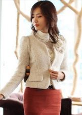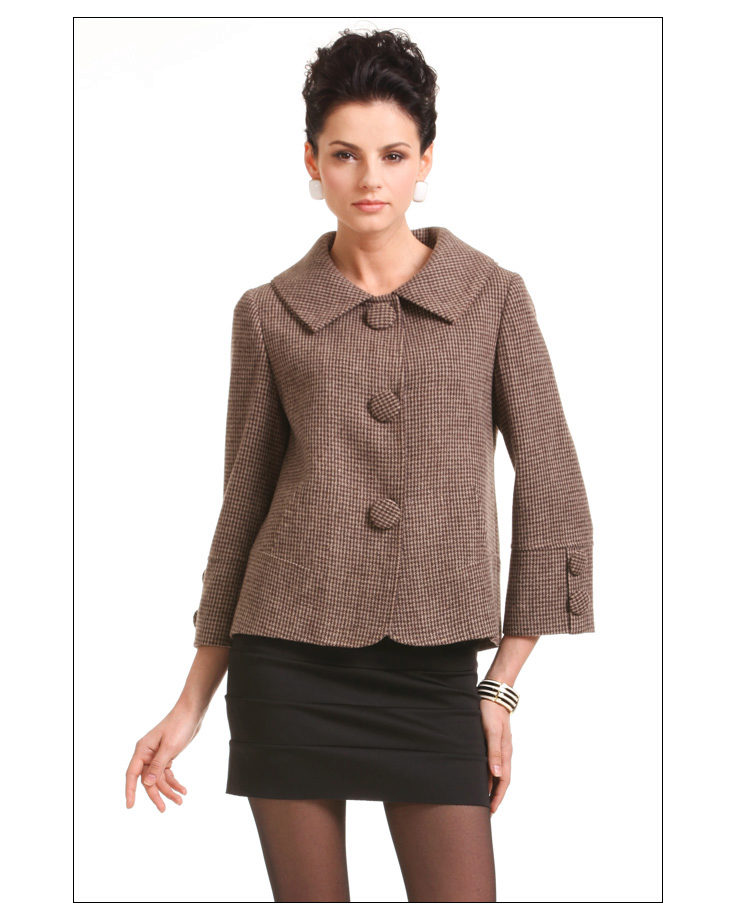 The main material for sewing a short coat is wool, made from both pure wool and with the addition of artificial fibers. The main types of coarse wool fabric are alpaca, boucle, vigon, gabardine, diagonal, drape, cashmere, crepe and tweed. From cotton fabric in the production of a short coat, preference is given to moleskin and velvet.