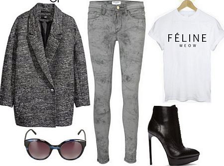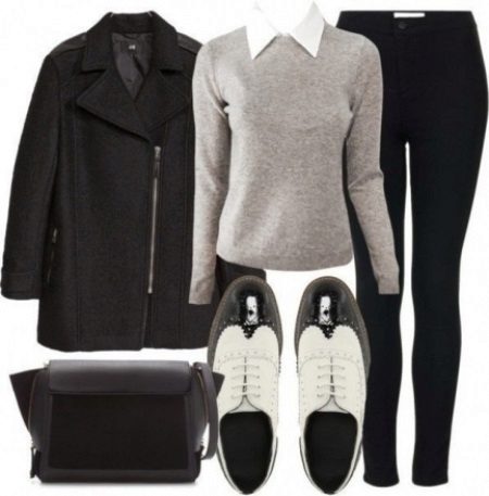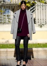 Absolutely any model of mini-coat will suit the happy owners of the “hourglass” silhouette; they can only select a thin waist with a suitable strap in style and color. Girls of short stature should choose a half-length straight silhouette with a length slightly above the knees. Particularly advantageous will be the product of bright color. As an option - a gray coat with narrow jeans and ankle boots with high heels.