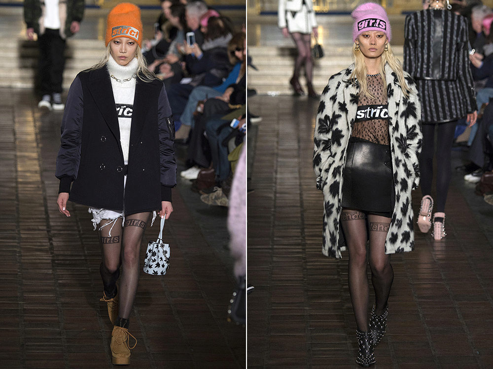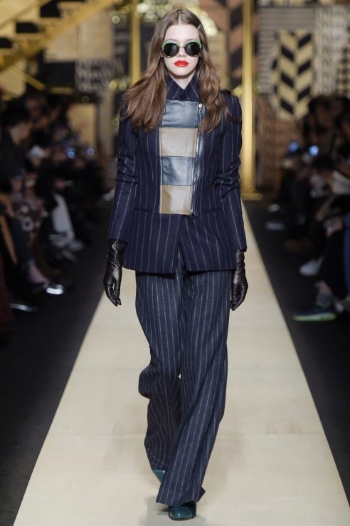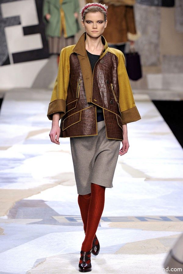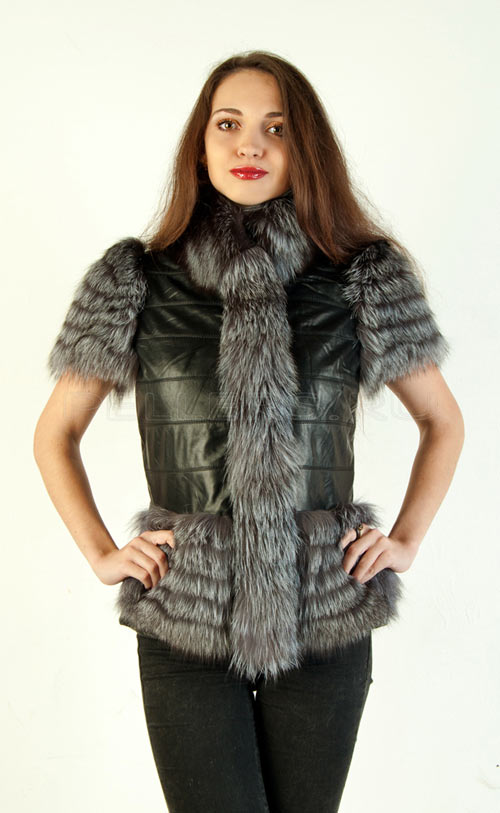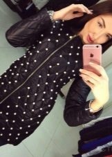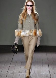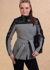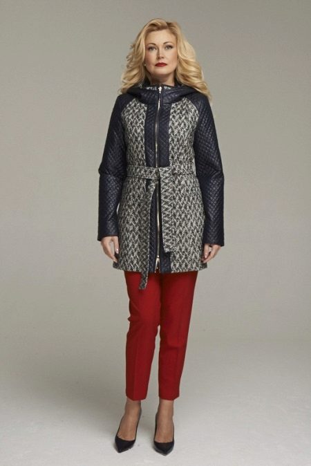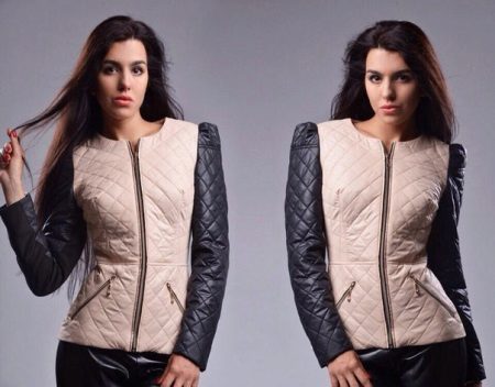 Contrasting stripes of leather, suede, fur, raincoat fabric, knitted fabric. Often, the material is replaced with pockets, collars or sleeves completely.