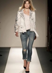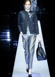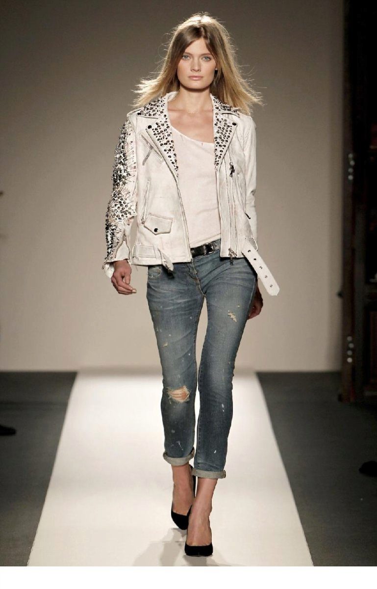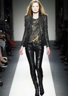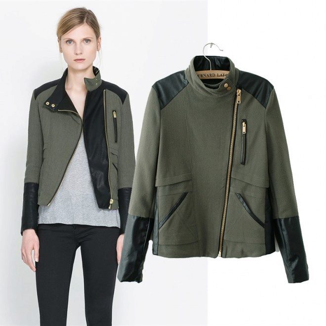 Despite the fact that the leather jacket was originally considered a male style, modern girls and women cannot deny themselves the pleasure of wearing a short coat with a slanting zipper, made from soft and plastic wool fabric. There are leather jackets on buttons or, altogether, on a secret fastener. These models are both with a turndown collar and with a stand. The belt is usually not provided.