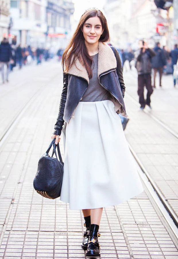 Young ladies with the figure of “pear” or a right triangle need to emphasize the shoulder line. A short free-coat with a stand-up collar is recommended, it can be fur. The ideal length is to the knee. The color can be bright, but it is important to add accessories properly.