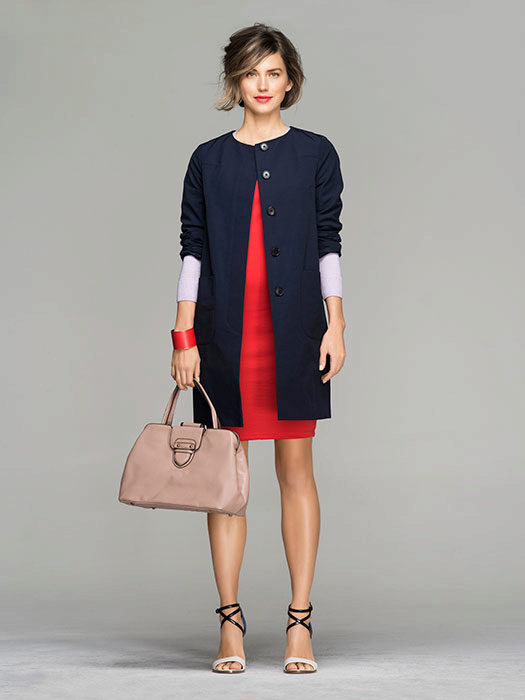 Ladies with the "rectangle" figure should be given preference to a short coat, somewhat extended downwards, with asymmetry elements, so that you can visually distract from the waist. The best length is knee-deep or mid-thigh.