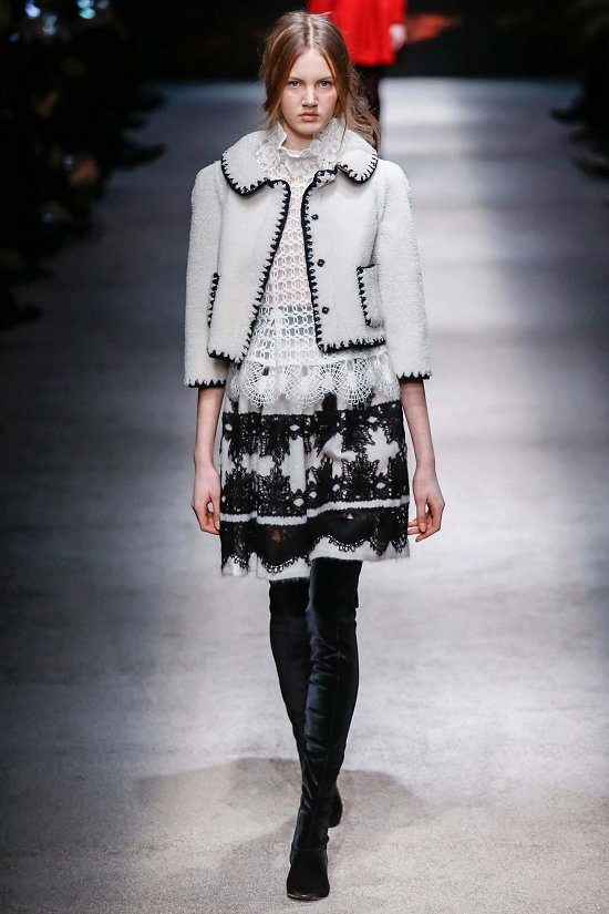 One of the most fashionable trends is the use of a short coat when forming an image in a grunge style. This combination of incompatible. For example, the combination of a brutal pea-jacket with glamorous labutenes, rough skin of the main fabric and elements of the finest lace.