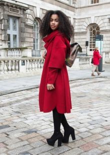 From the standpoint of color gamut, a properly chosen outfit should not contain more than three colors, since this look does not look neat and the sense of integrity of the image is lost. The red coat will dominate, and, accordingly, it is necessary to choose clothes for it in a color palette that does not replay it, but only emphasizes its significance.