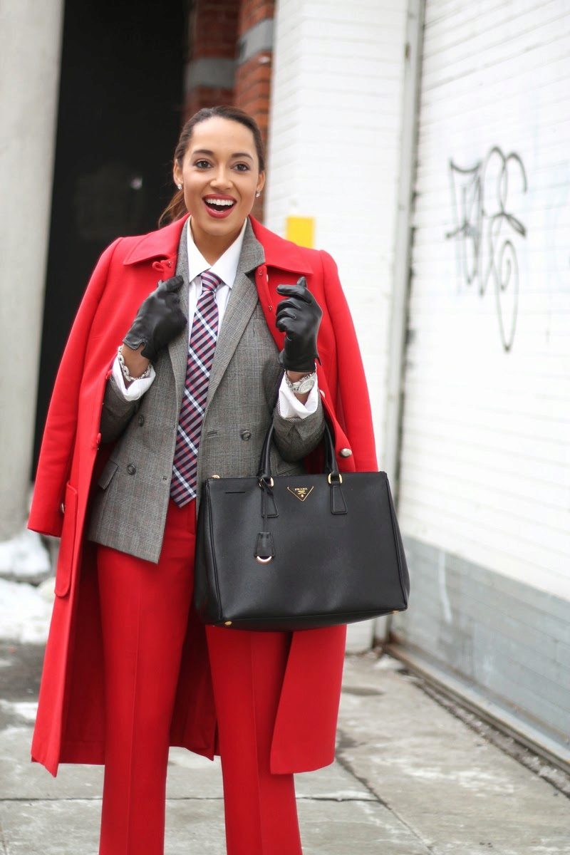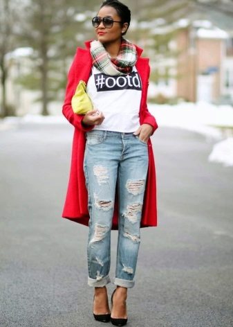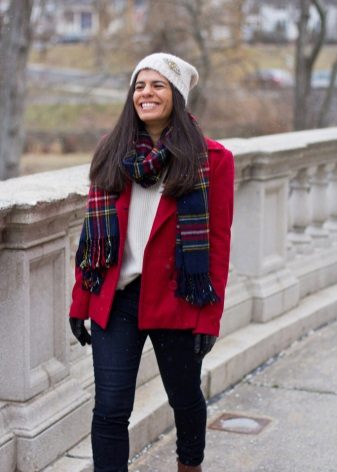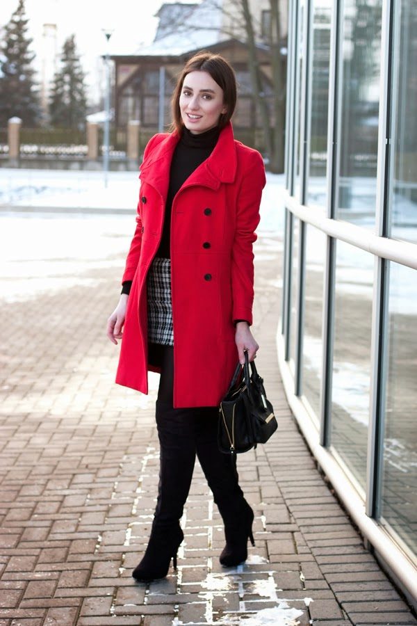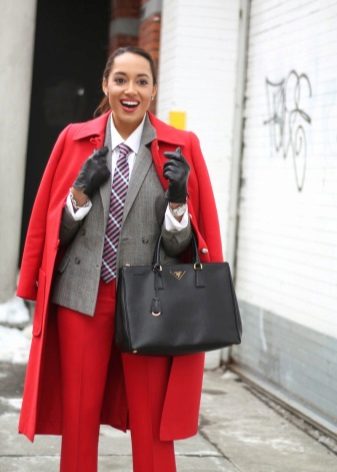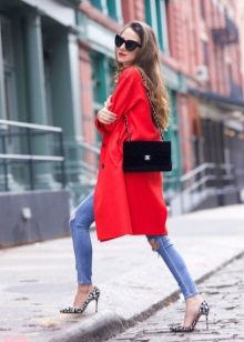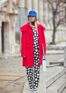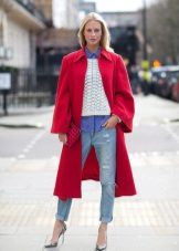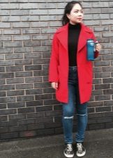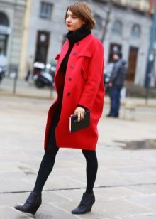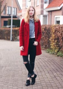 The red coat should be carefully combined with other colors, because it is considered a capricious element of women's wardrobe.