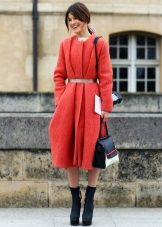 The red coat of the classic cut must be in the women's wardrobe, as it is suitable for different situations. Today in the trend of the model, narrowed downwards, as well as with the smell. The classic model has a length slightly below the knee.