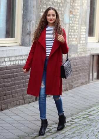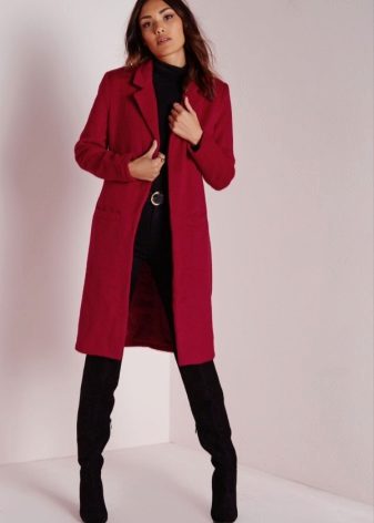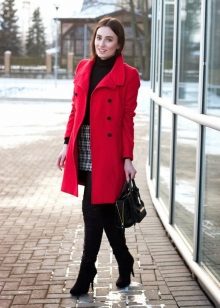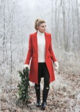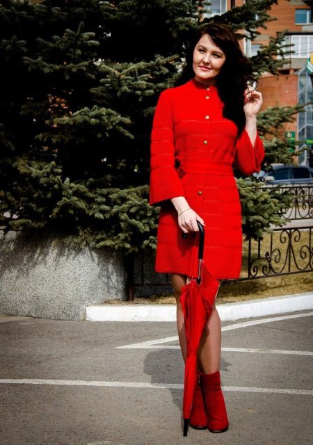 When choosing the length of the red coat should pay attention to the features of the figure. Models of mini or midi length will suit girls of short stature, but long options should be immediately abandoned. Owners of slender and tall legs may prefer models with length to mid-thigh.
