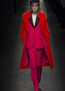 A red coat can be made of calfskin, characterized by softness. Such models today can often be seen on fashion catwalks.