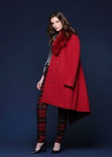 The red coat of volumetric style looks irresistible and feminine. Fitted options are usually long. New models have asymmetrical cut, a variety of collars.