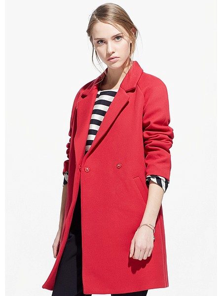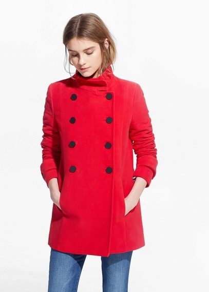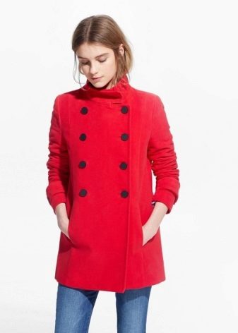 Another Spanish brand, Mango, also offers several models of women's red coats. It can be with a turn-down collar or stand. A characteristic feature are buttons in two rows. They can be both white and black. Many models are slightly longer than the knee, although there are shortened versions. Mango offers a coat with a straight and slightly flared cut. Each woman of fashion will be able to choose the ideal option depending on the type of figure.