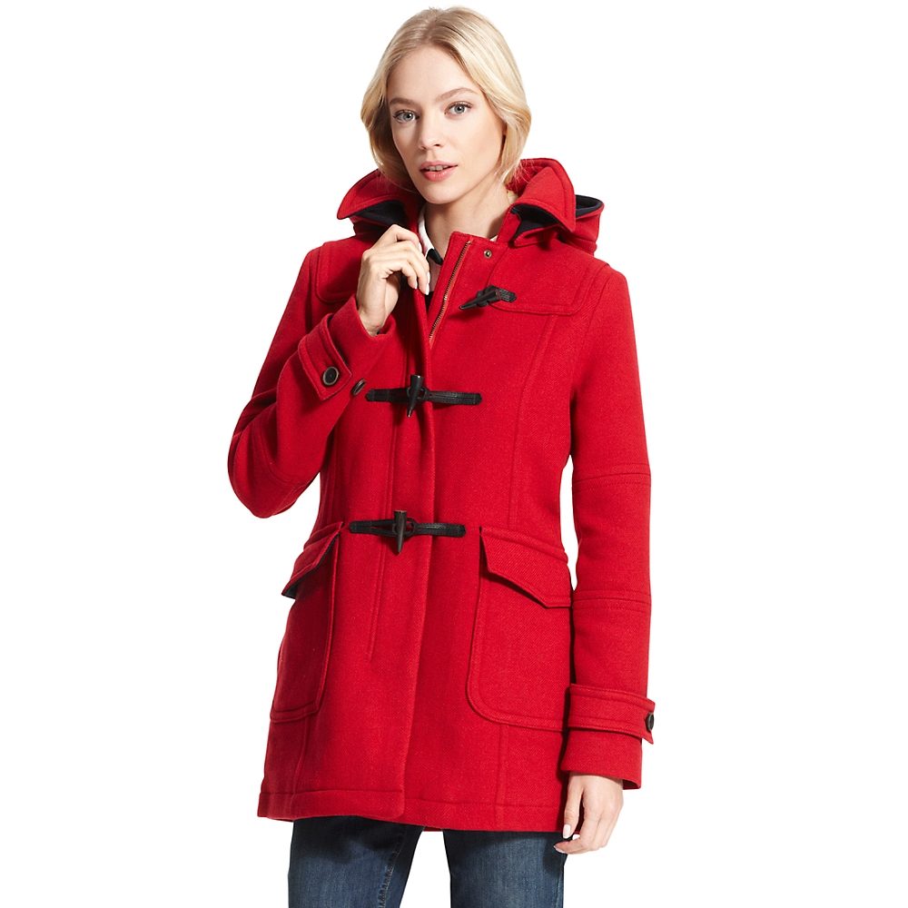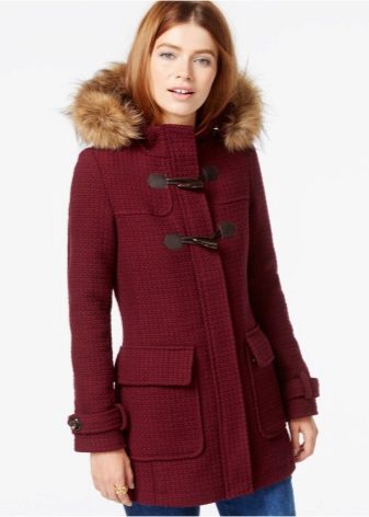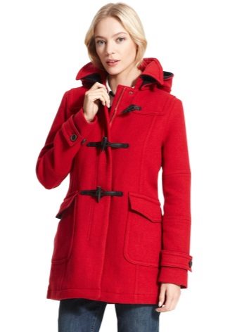 The red duffle coat is perfect for girls who prefer a practical cut in combination with bright colors. Often there are models with a zipper in front, which covers the clasp on the buttons.