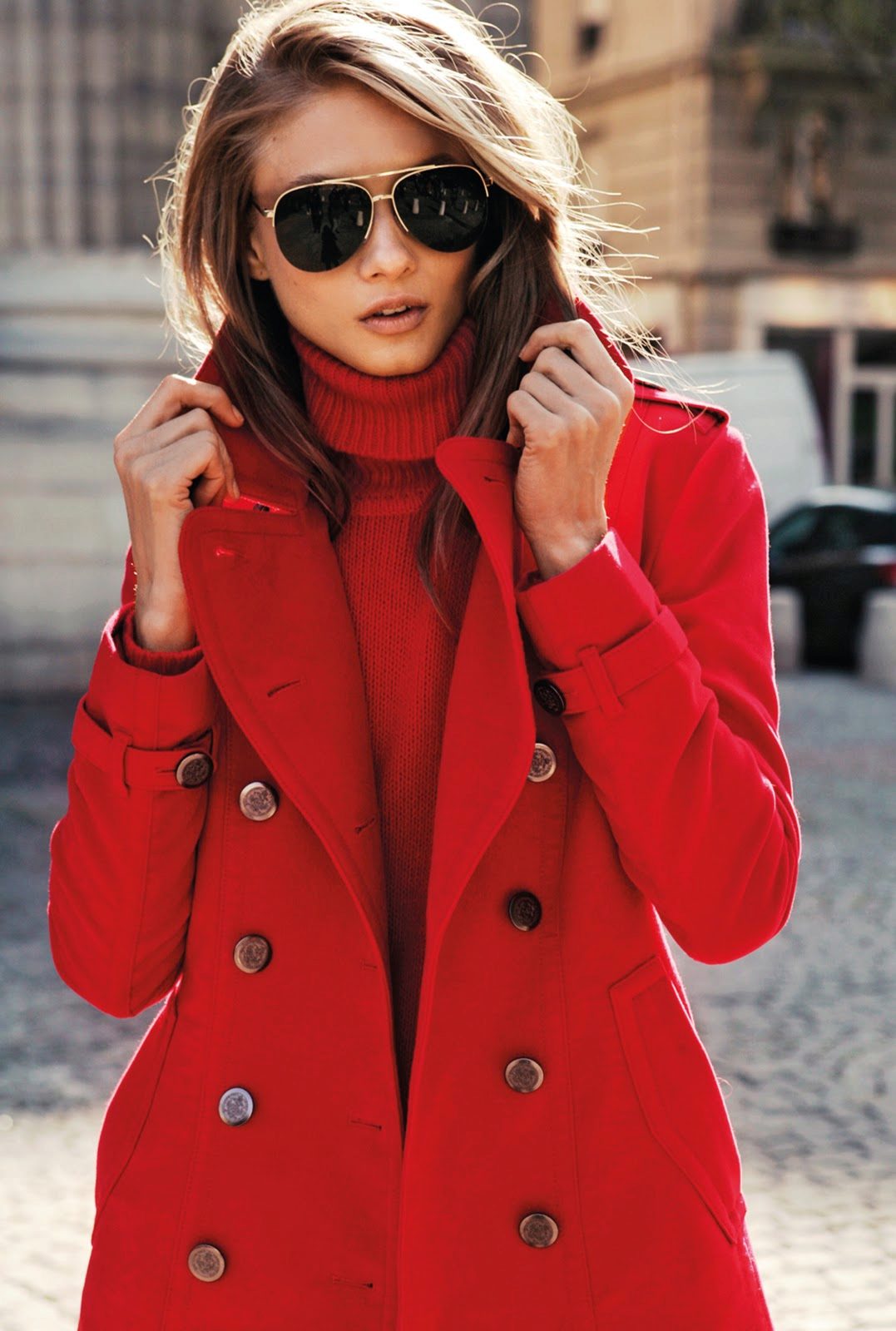 Girls with fair skin and black hair, who belong to the “Winter” color type, can get a coat of red or cold color. To the color type "Spring" belong mainly blondes. They are ideally suited warm shades of red.
