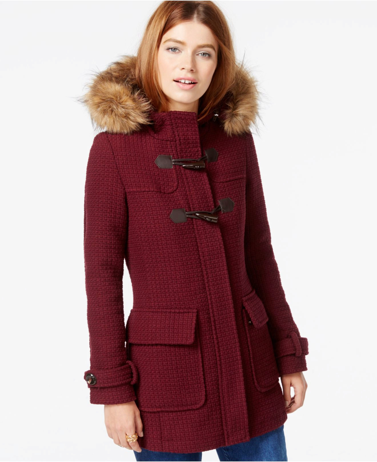 For a winter coat, designers use fox fur or silver fox to decorate collars and sleeve cuffs. Also, fur can be an original decoration of the front edge or lining. The coat may have long or short fur. The model of red color with short fur of astrakhan fur, sheepskin, nutria, sheepskin or rabbit looks elegant and elegant.