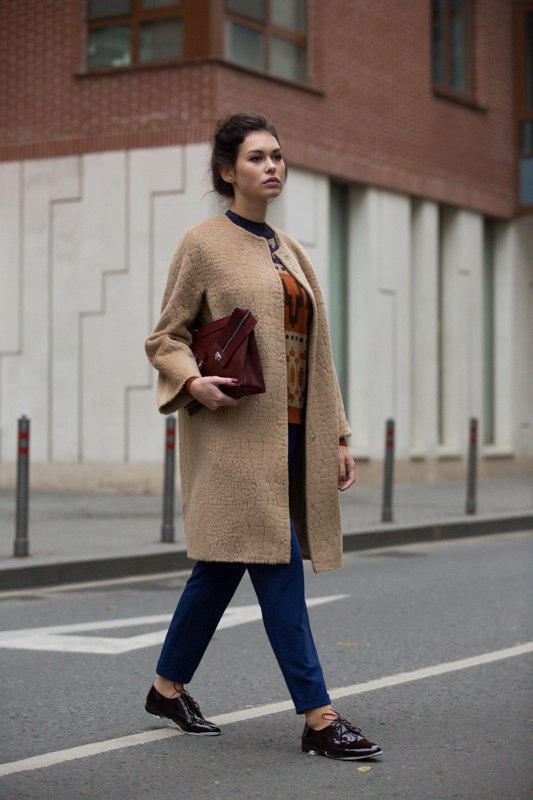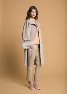 In addition, the quality of the material allows its owner to discard all fears about the fact that over time the saturation of the color of the coat will fade. The product consists of 25% natural wool and 75% alpaca wool. This combination allows products to provide heat for even the longest walks.