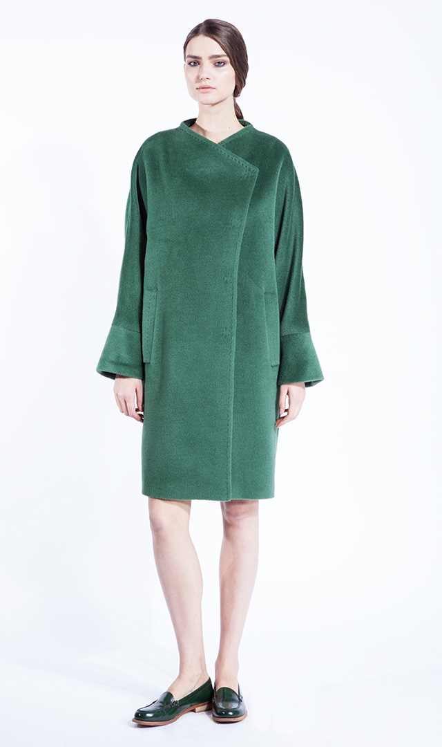 The so-called collar tube gives this coat a slight negligence, without depriving it of femininity and elegance. Laconic baggy silhouette of the product looks great on the female figure, giving it some charm. In order to avoid overloading the image, the designers prudently supplied the products with a hidden fastener.