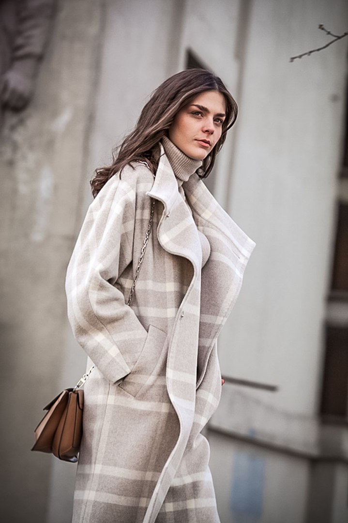 The main highlight of this coat is an English collar in combination with a double row of buttons. This classic in combination with modern baggyness and bulkiness makes this variant surprisingly laconic and spectacular, due to which it will surely fit into most images from different styles of its owner. In addition, the ideal length of this model will allow you to wear it with skirts and pants.