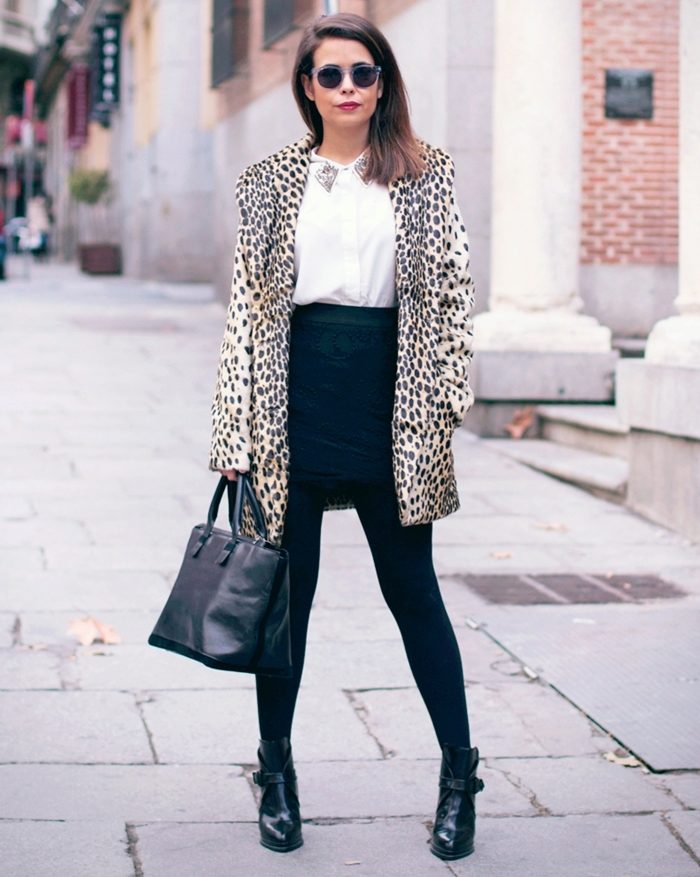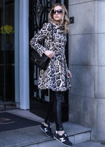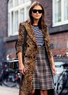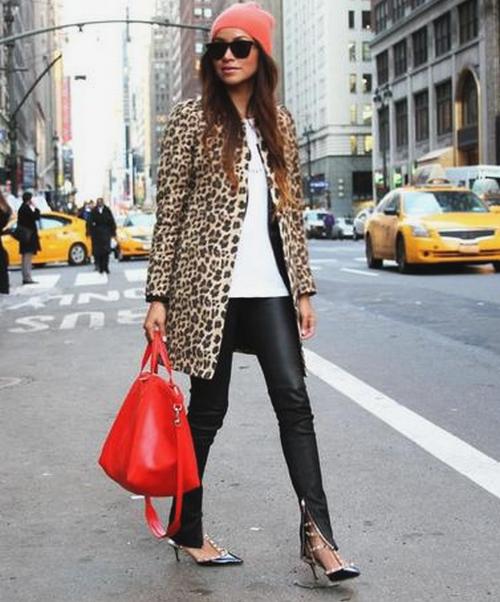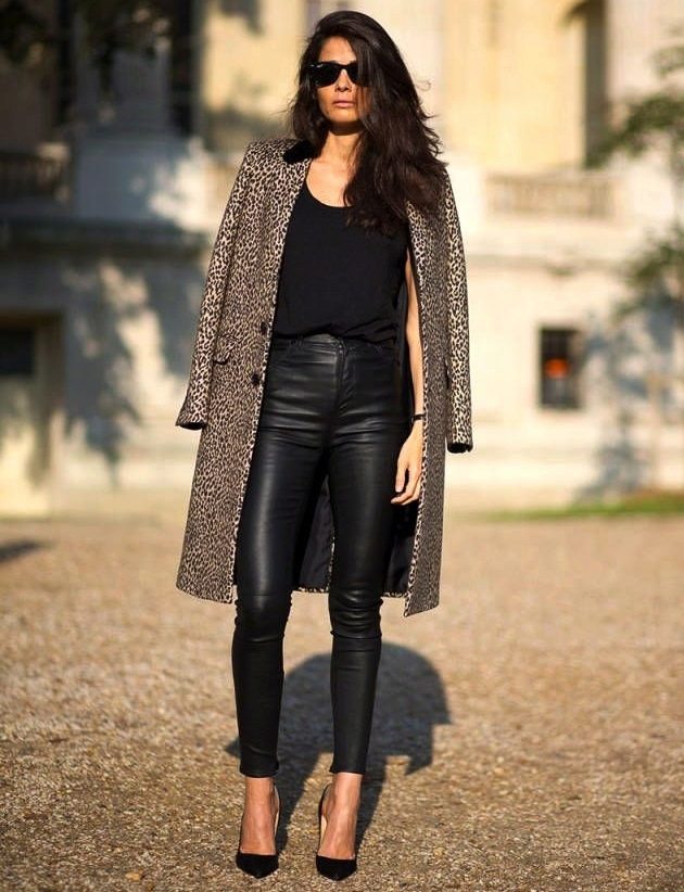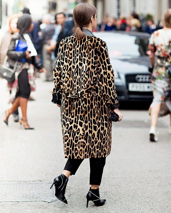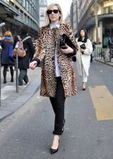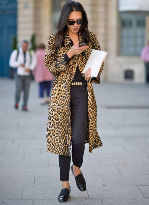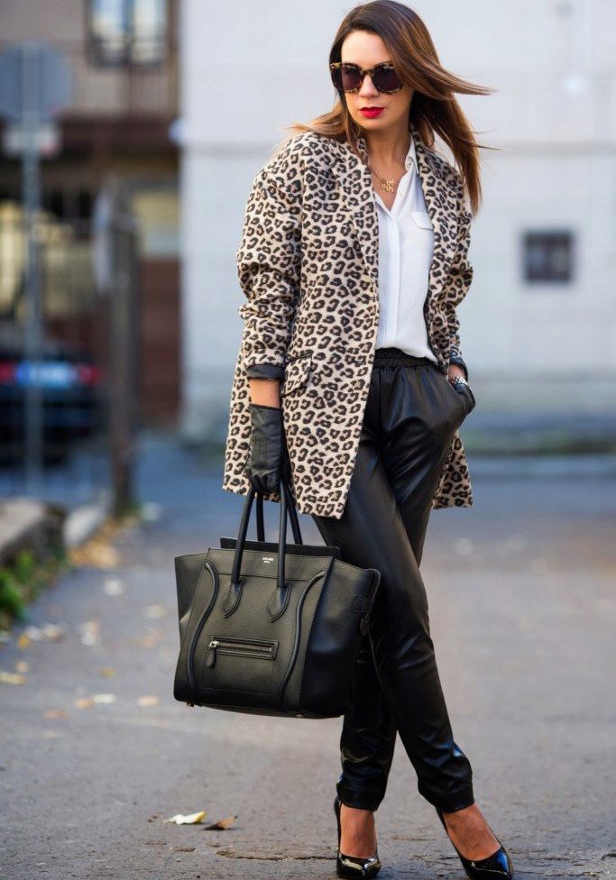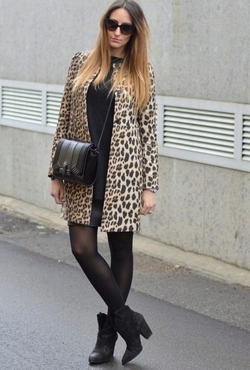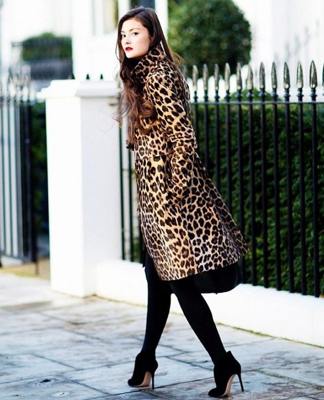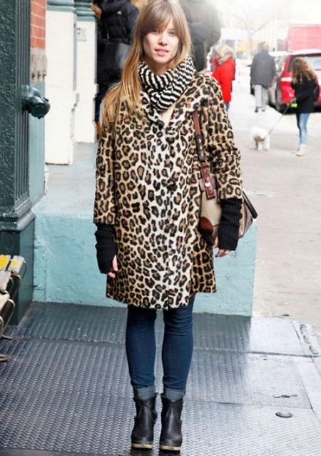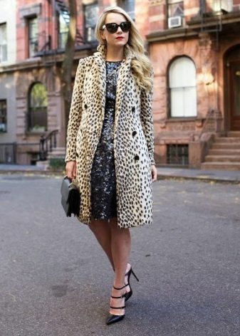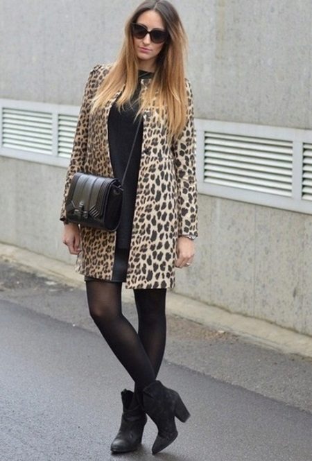 Coats in leopard spots look interesting in combination with leather, silk, wool, velvet fabric. The best colors for combining a classic leopard are black, brown and its light and dark shades.