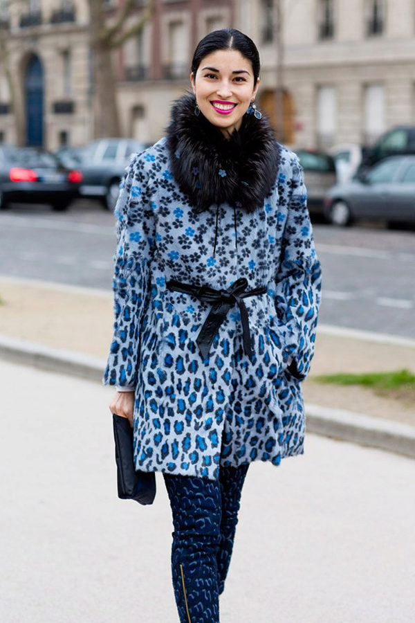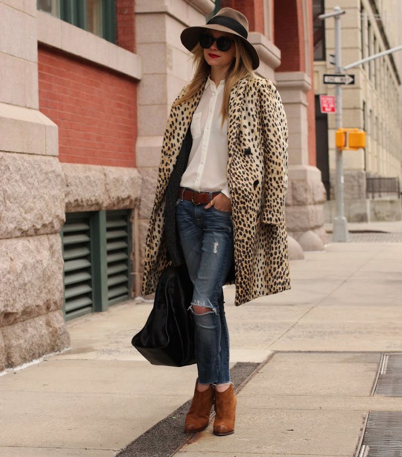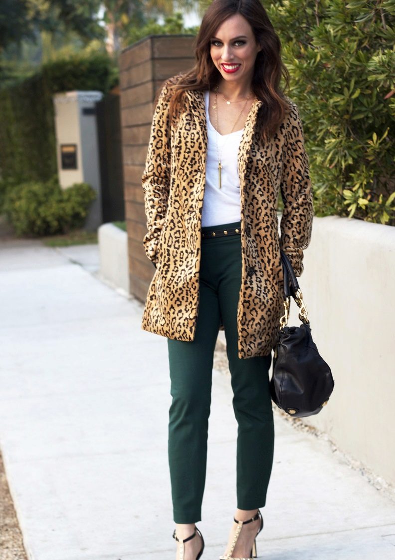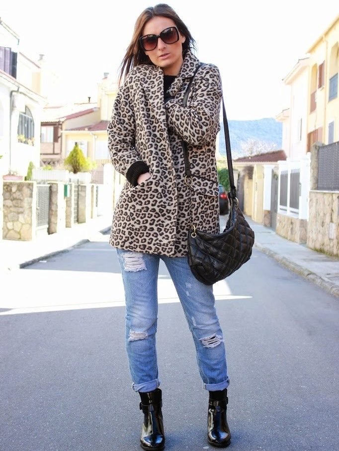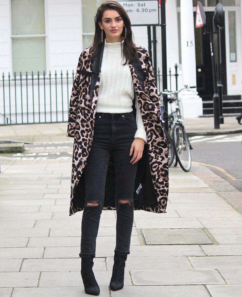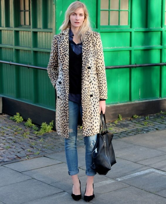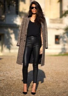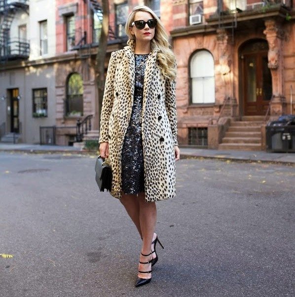 Coats in leopard spots look interesting in combination with leather, silk, wool, velvet fabric. The best colors for combining a classic leopard are black, brown and its light and dark shades.