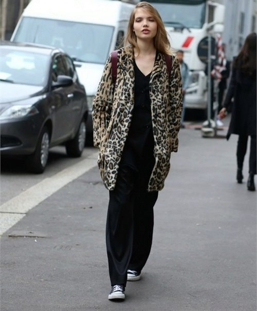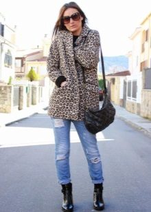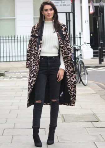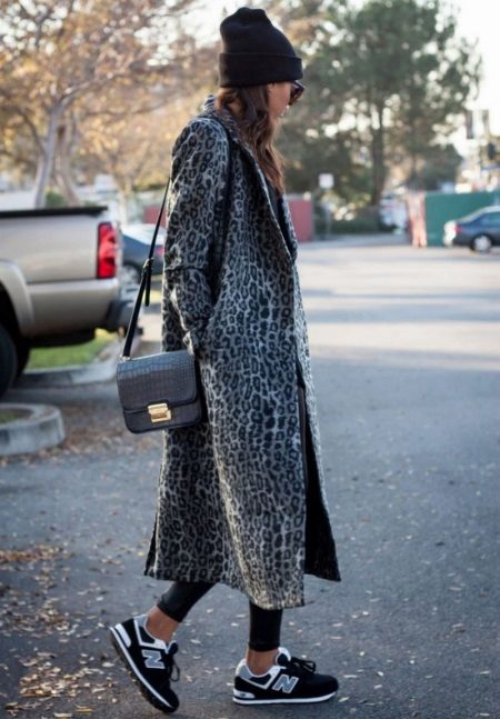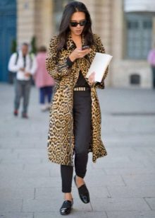 There is also a maxi coat in spotted colors, but this is rare. However, such a length is now in fashion, and if you really want a coat to the floor, but with leopard spots, then you should try to wear it wide-open or with monophonic things.