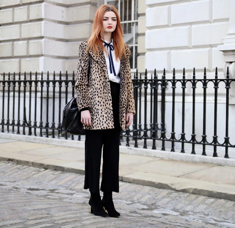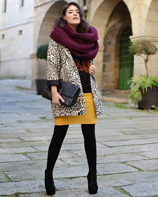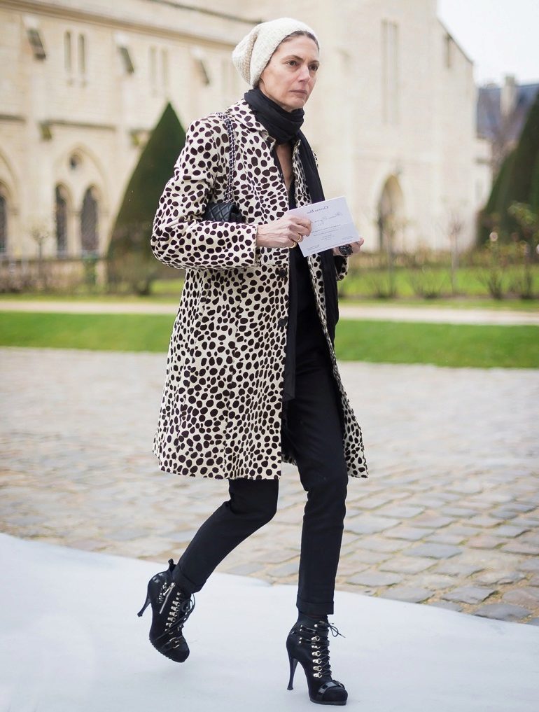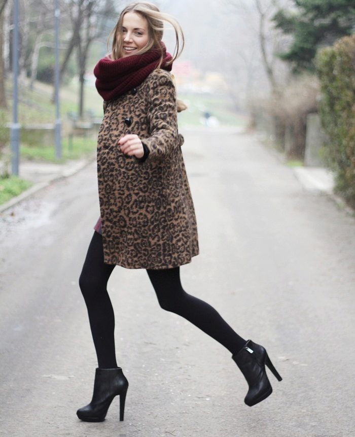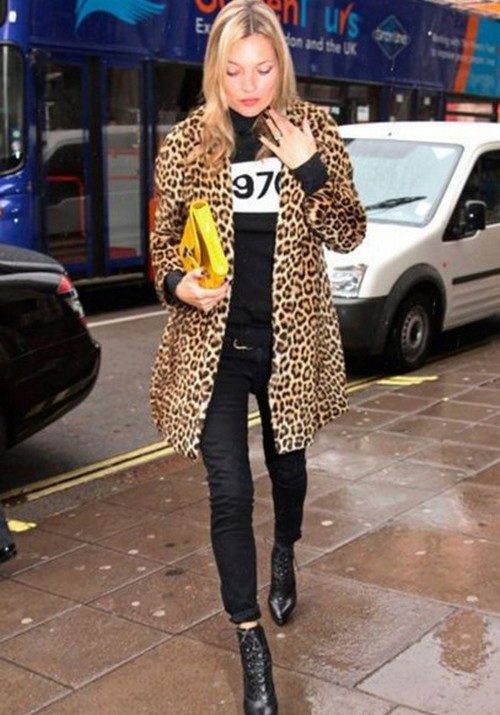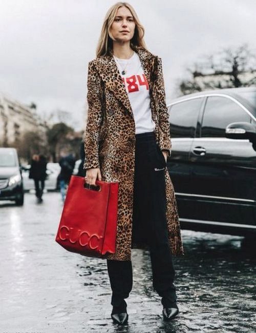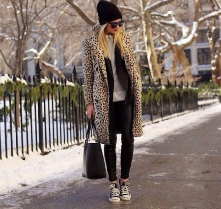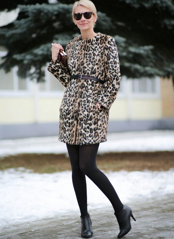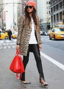 Depending on the length and style of the coat, you can pick up long boots and boots, stilettos, ankle boots, platform boots. The bag is chosen depending on the situation, it can be both a regular shopper and an elegant clutch, but it should not have large decorative details. If in doubt, it is worth knowing that the most versatile color for a combination with a leopard is black.