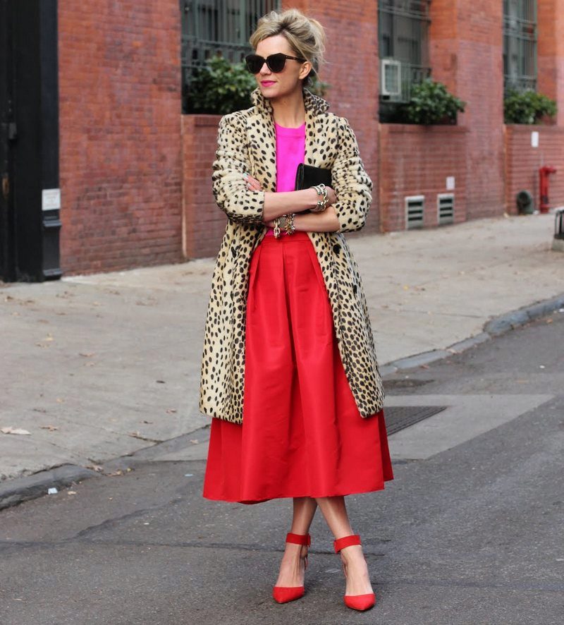 You can create an elegant evening look with a black dress, a silk shirt and trousers. No less luxurious leopard print looks with white and red clothes. This combination will turn out bright and attractive.