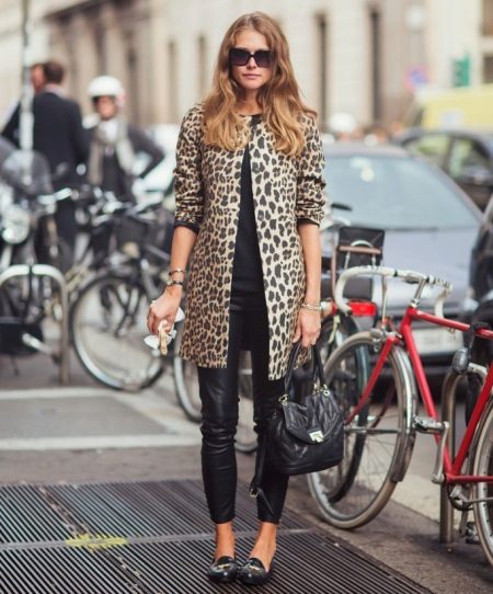 For a start, it is worth remembering a few simple rules about drawing images with a leopard coat. Since this is a very active coloring, it is best if it is presented in a single version, in this case, only on the coat. It is impossible to combine a leopard with other, not only animalistic, ornaments, for example, with floral and geometric. Best of all, if the clothes, shoes and accessories are monotonous.