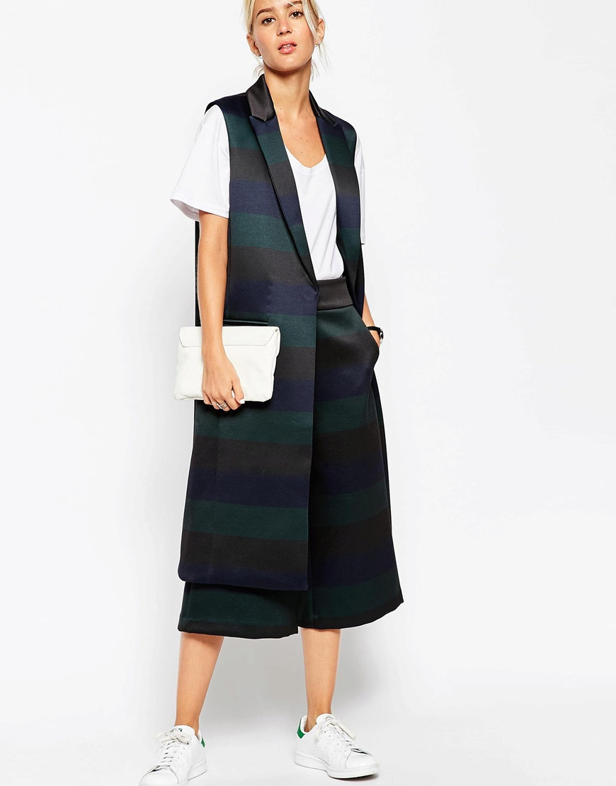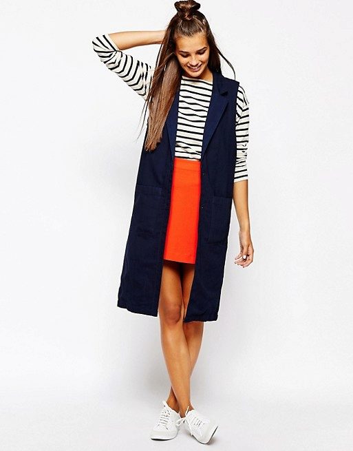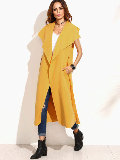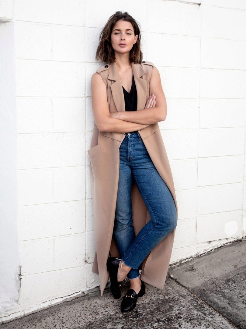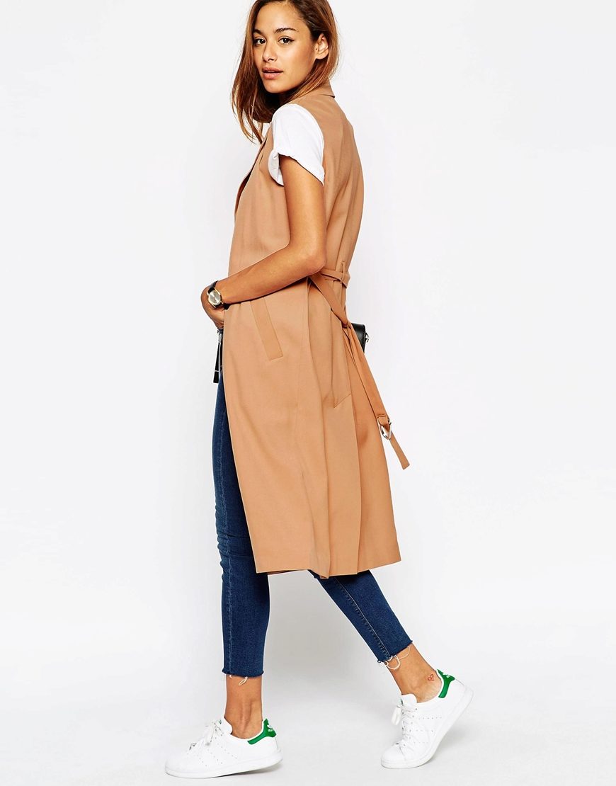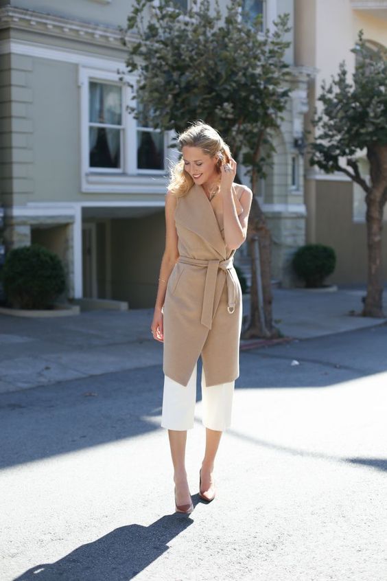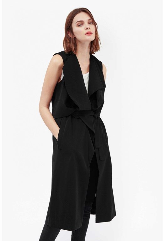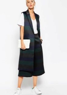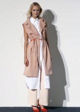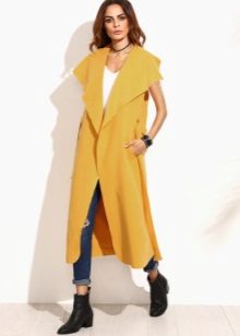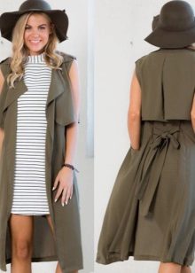 The sleeveless coat resembles a long vest and can be sewn of any lightweight fabric. The optimal length is to the middle of the knee. Today it is a fashionable piece of clothing that blends equally well with jeans, dresses or pants.