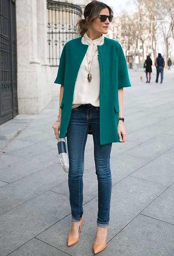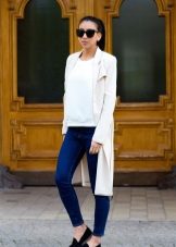 White coat is very popular in the summer. It will easily complement any casual or festive look, it will look good with both jeans and evening dress.