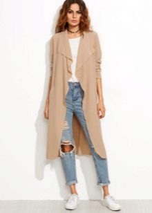 A summer coat can look like an elongated jacket without a lining, like a trench, made from lightweight fabric or as an oriental-style robe. Therefore, the name of the summer coat is directly related to the cut and style of the product.