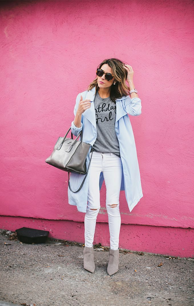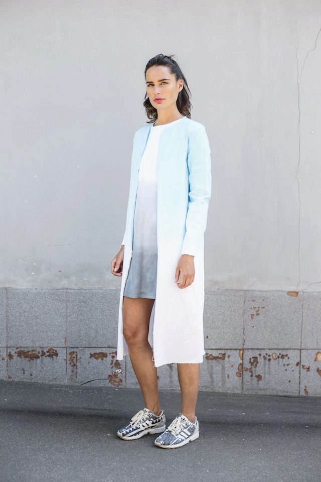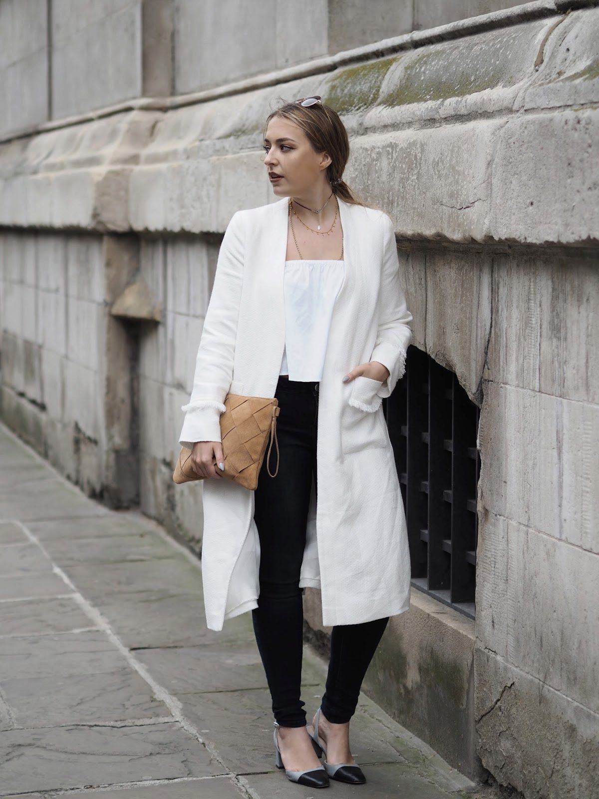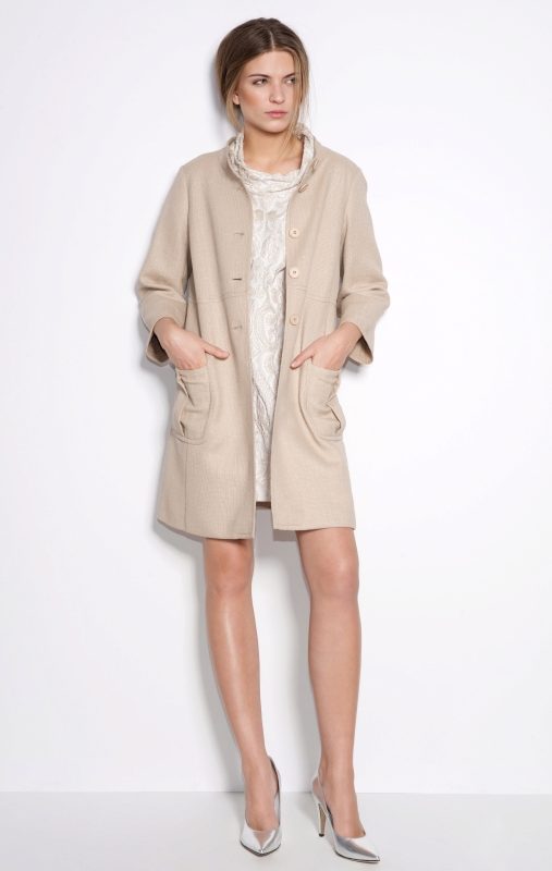 Let's look at the images with a white coat of similar cut. This allows you to visually see how a summer base coat can fit into any trendy look.