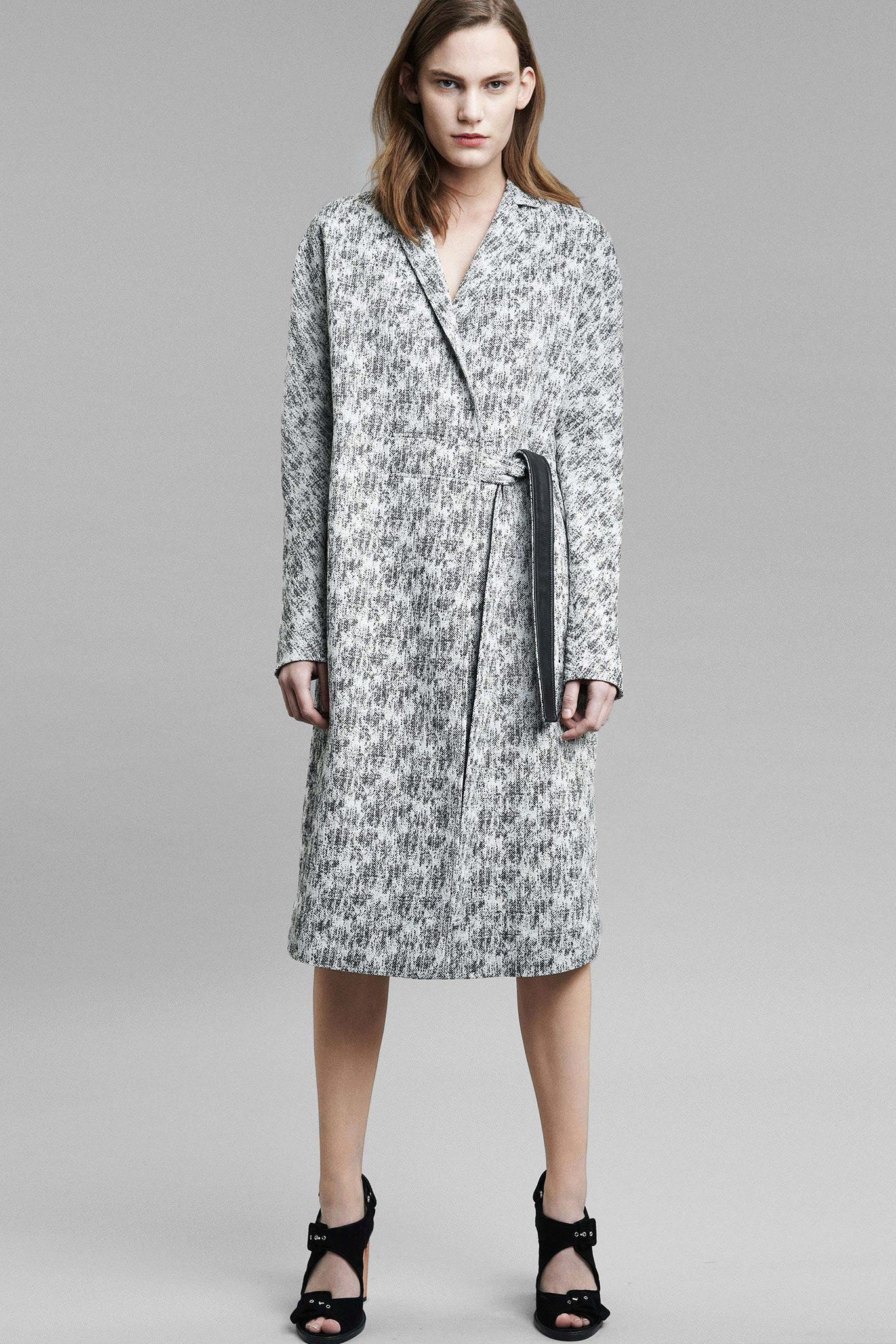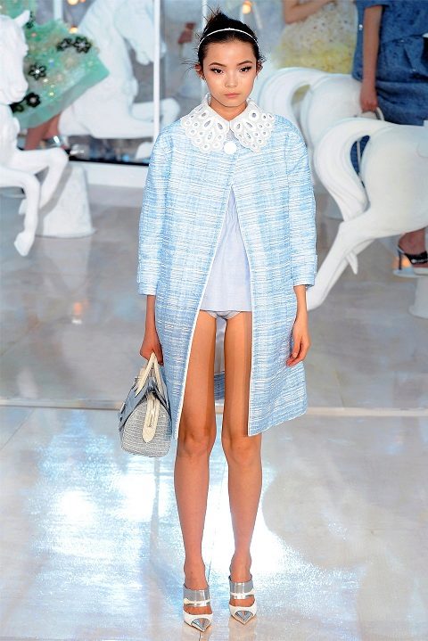 Chanel's summer coat looks like an elongated jacket, invented by the great Mademoiselle. The classic coat of the Chanel house is also sewn with their boucle wool, has a straight silhouette and is just above the knee.