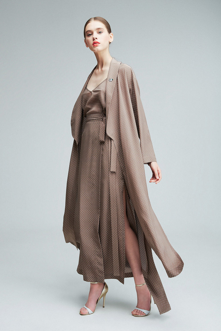 A coat with a smell like a bathrobe will make your look light and relaxed.