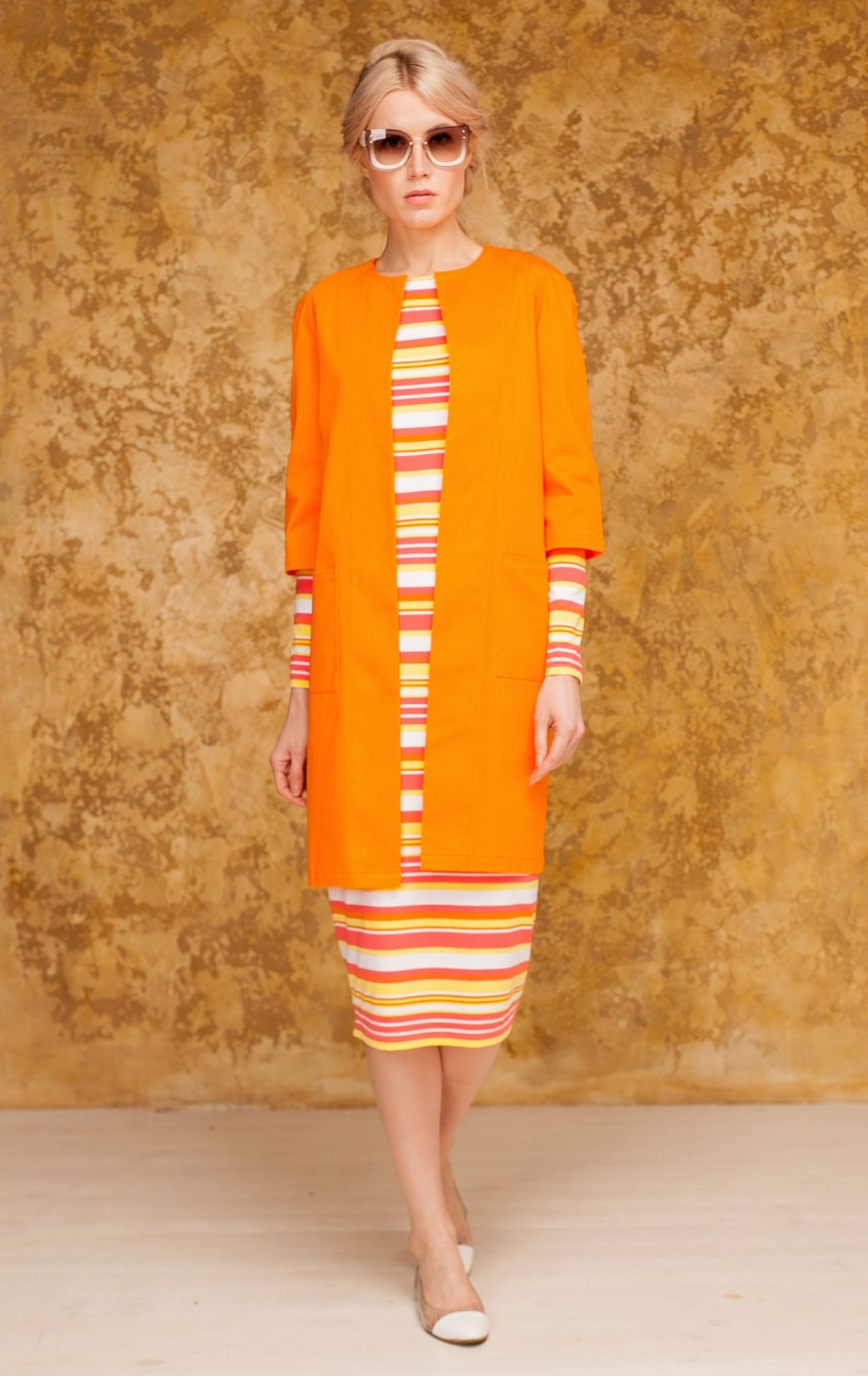 Business women should choose strict and concise coat models. They go well with a pencil skirt, dress pants, shirts and blouses. If your business wardrobe is dominated by a neutral color scheme, give preference to a summer coat of bright color, which will help refresh the image.
