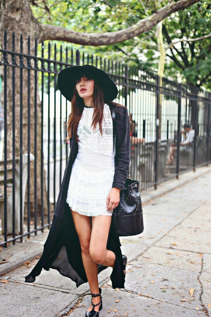 - Nothing better to go out than a little black dress and black heeled sandals. Complete the look with a white jacquard coat, and get a refined feminine look.