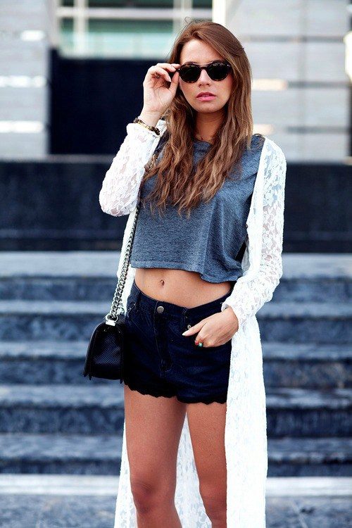 Guipure coats that are lighter and thinner are also found. They go well with short shorts, ripped jeans and flying tops.