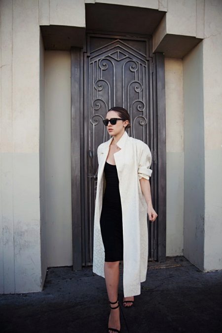 In the summer, a black coat looks strange, it is rarely found in everyday wardrobe. But this is a great option for the publication, it will complement the evening dress of any color. Gold or silver accessories will complete the look.