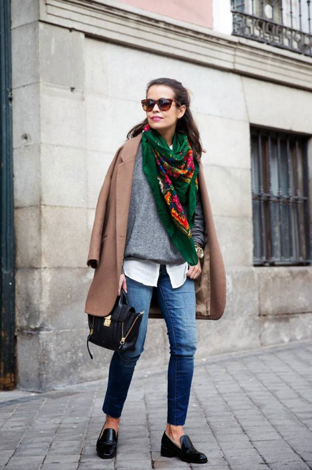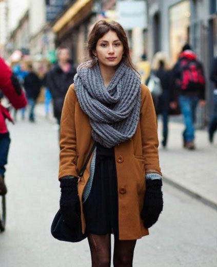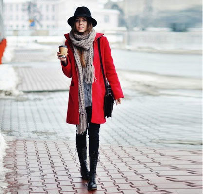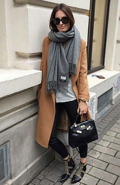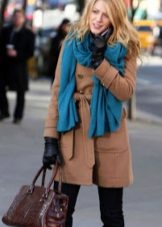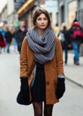 A scarf or tippet is another indispensable accessory for a coat. You can pay attention to the scarves with a fringe or massive models of stoles. Snudy also still relevant. Important note about the color variations: if the coat is painted with a catchy print, the scarf or tippet should be monotonous.