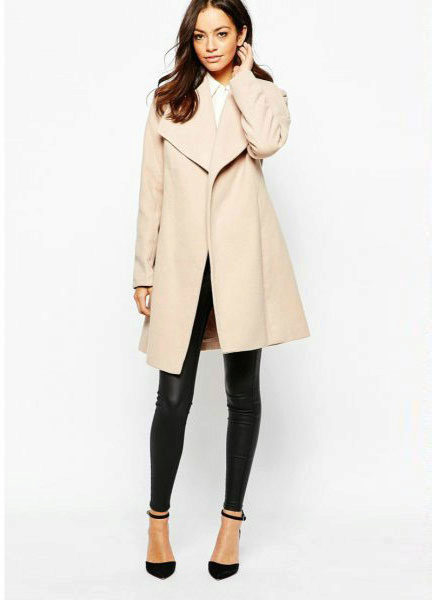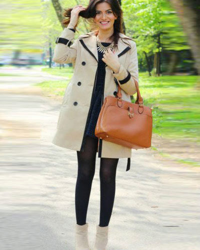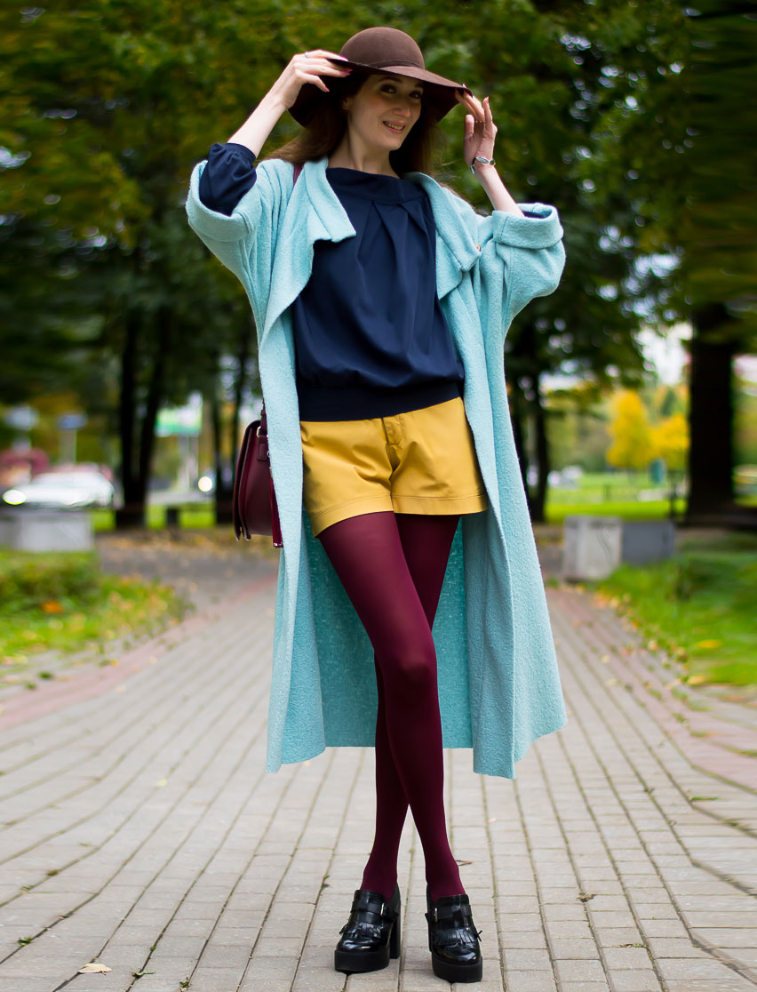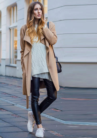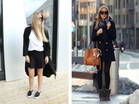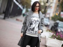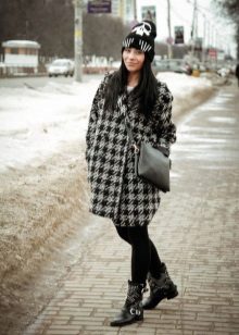 The combination of a coat with shorts allows you to create conflicting, but impressive images. If you choose a mid-thigh model with a bright print and complement it with black or flesh-colored tights, then any classic coat model will be the perfect finish to your attire. Boots and an oversized sweater make this look incredibly stylish.