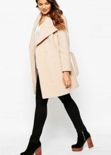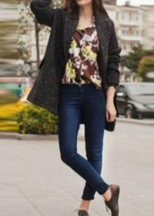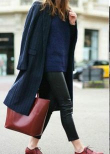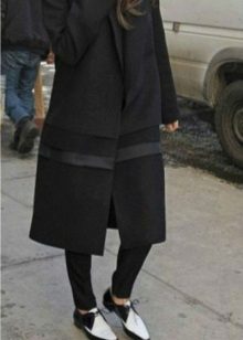 With short coat models you can safely combine heavily shortened trousers, but with longer models you should wear trousers of classic length, leg trousers 7/8 are allowed. In the latter case, shoes should be selected on a flat sole - stylish loafers, brogues, chelsea. In other variations, a low, steady heel or wedge is welcome.