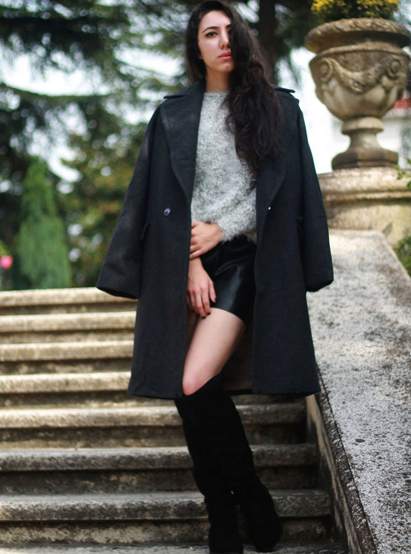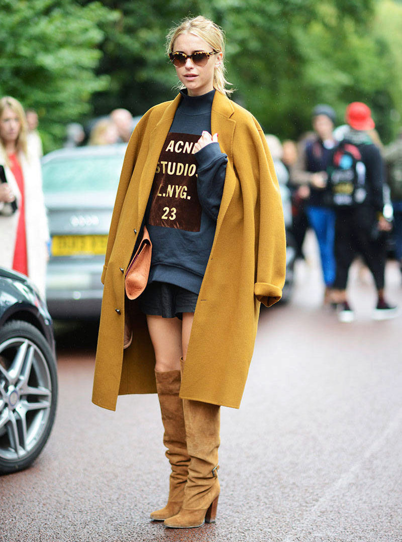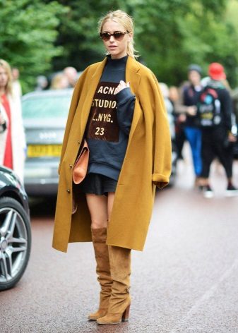 With high boots model boots it is worth trying a combination of cocoon coat or another representative of the oversized style.