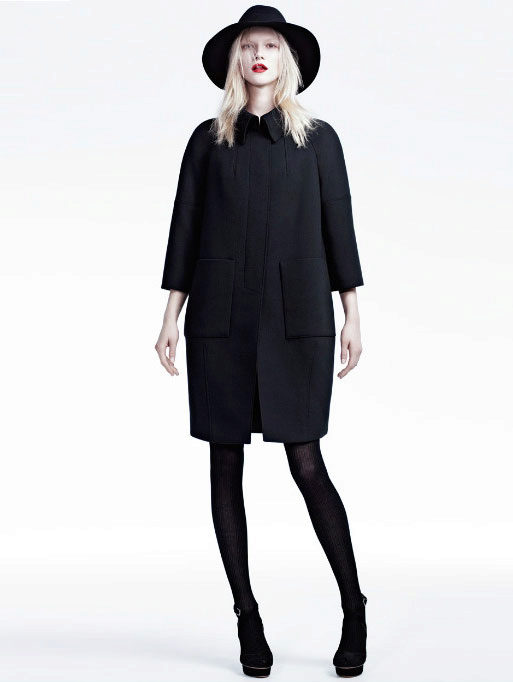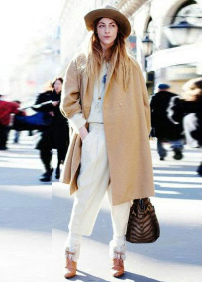 - a long classic coat and a soft-brimmed hat.